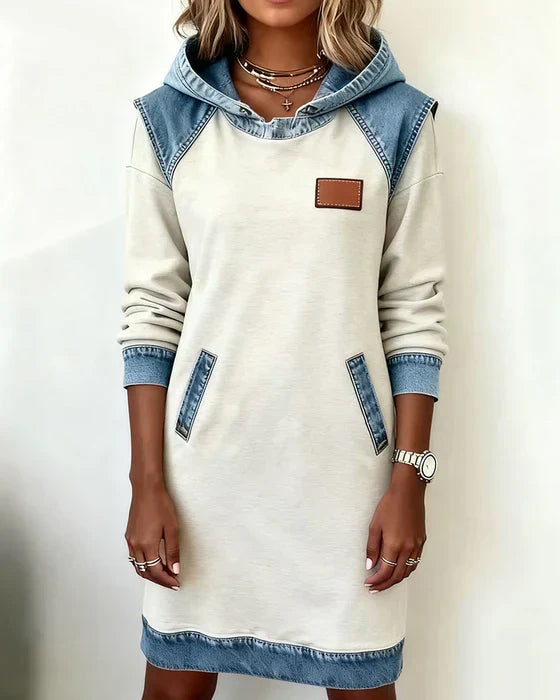 Ta sukienka z kapturem doskonale łączy komfort z nowoczesnym stylem. Jej kontrastowe panele, korzystny prosty krój oraz praktyczna kieszeń sprawiają, że jest idealnym towarzyszem na leniwe dni lub codzienne wypady. Wykonana z miękkiej mieszanki bawełny, otula ciepłem, zapewniając jednocześnie swobodę ruchów.