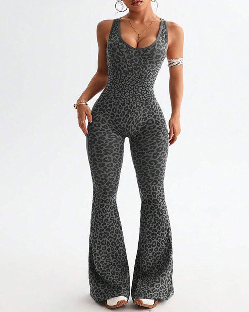 Poczuj swobodę ruchu i pewność siebie w elastycznym kombinezonie sportowym z motywem panterki. Wyrazisty wzór i elegancki, krzyżowy krój subtelnie podkreślają sylwetkę, a bezszwowa, elastyczna tkanina dopasowuje się do ciała i pracuje razem z Tobą podczas każdego ruchu.